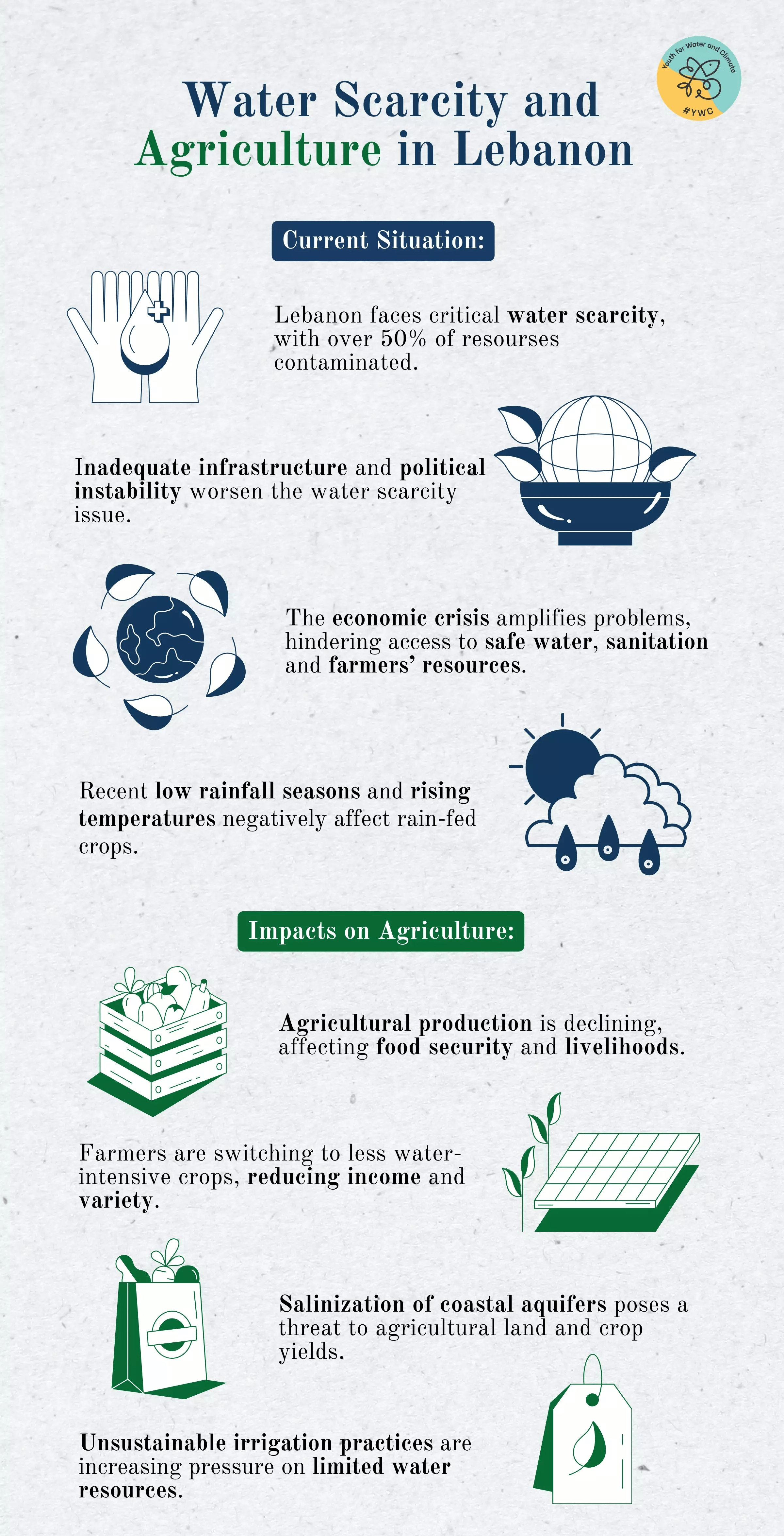 Agriculture is the backbone of rural Lebanon, providing essential food and employment. However, the water crisis is severely affecting crop yields and livestock productivity. Farmers are facing: