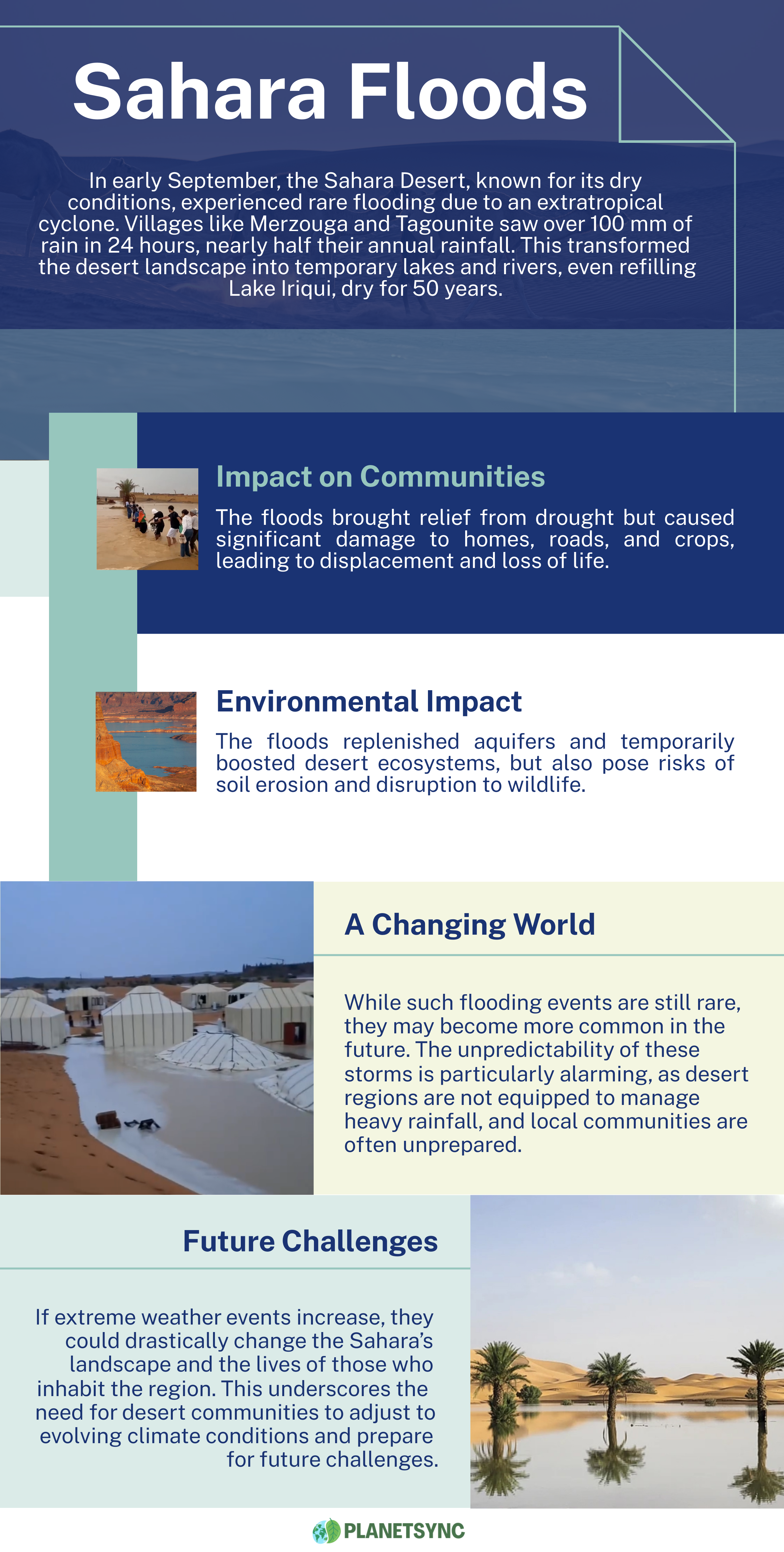 What’s particularly concerning is the unpredictability of these weather events. Deserts like the Sahara are not equipped to handle large amounts of rain, and the communities that live there are often ill-prepared for such extremes. If these kinds of storms become more frequent, it could permanently alter the region’s landscape and way of life. Preparing for and adapting to these new realities will be crucial for desert communities.