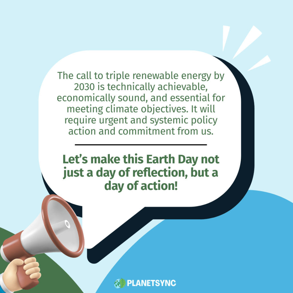 Earth Day reminds us that the power to protect the planet is in our hands. The call to triple renewable energy by 2030 is technically achievable, economically sound, and essential for meeting climate objectives. It will require urgent and systemic policy action and commitment from us.