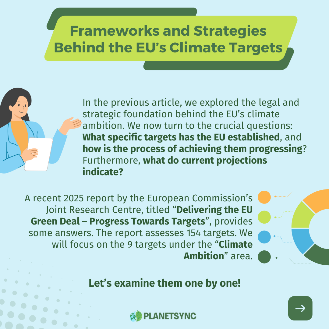 In the previous article, The EU’s Path to Climate Neutrality: Unpacking the Legal and Strategic Framework, we explored the legal and strategic foundation behind the EU’s climate ambition. However, policy design is only half the story. We now turn to the crucial questions: What specific targets has the EU established, and how is the process of achieving them progressing? Furthermore, what do current projections indicate?
