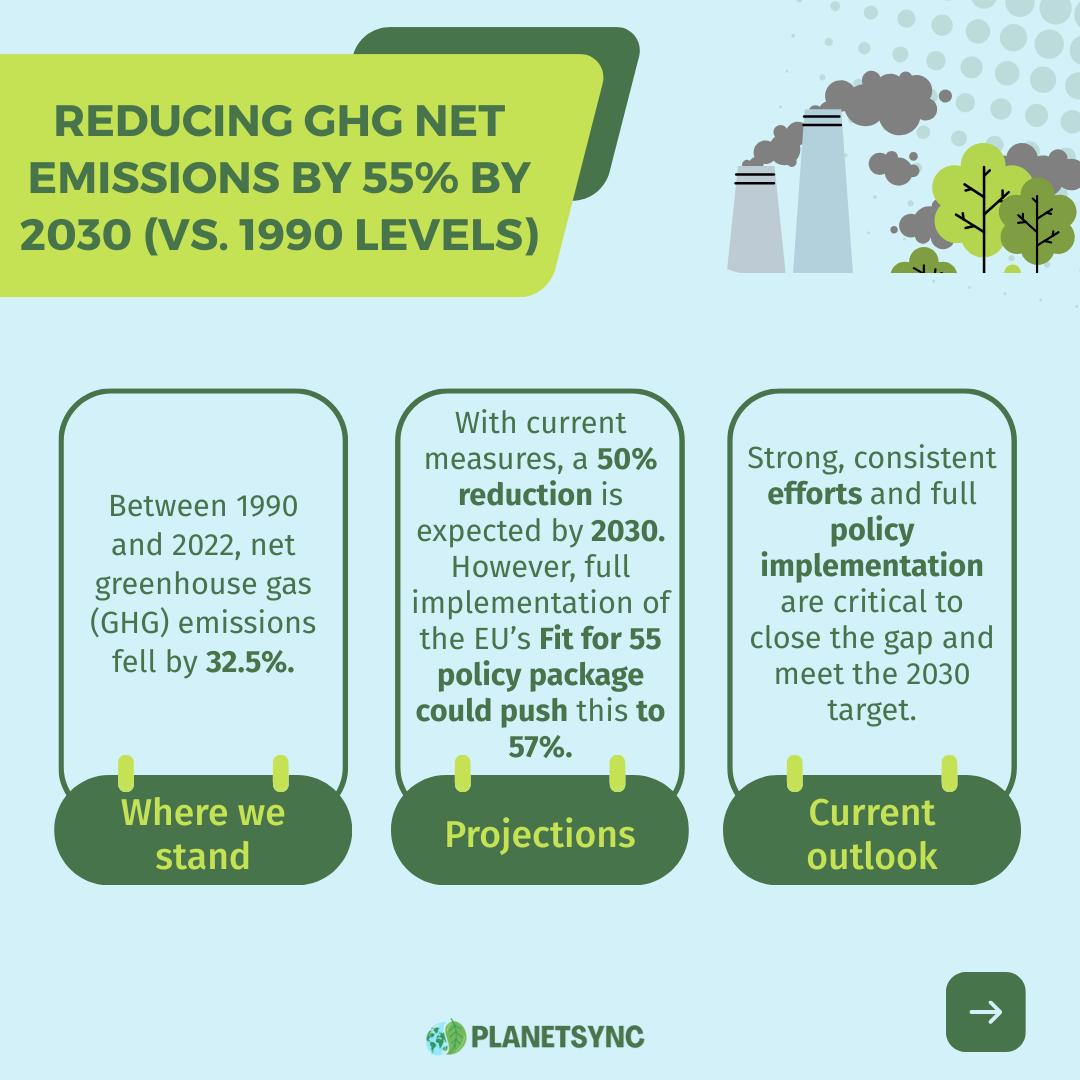Reducing GHG Net Emissions by at least 55% by 2030 (compared to 1990 levels)