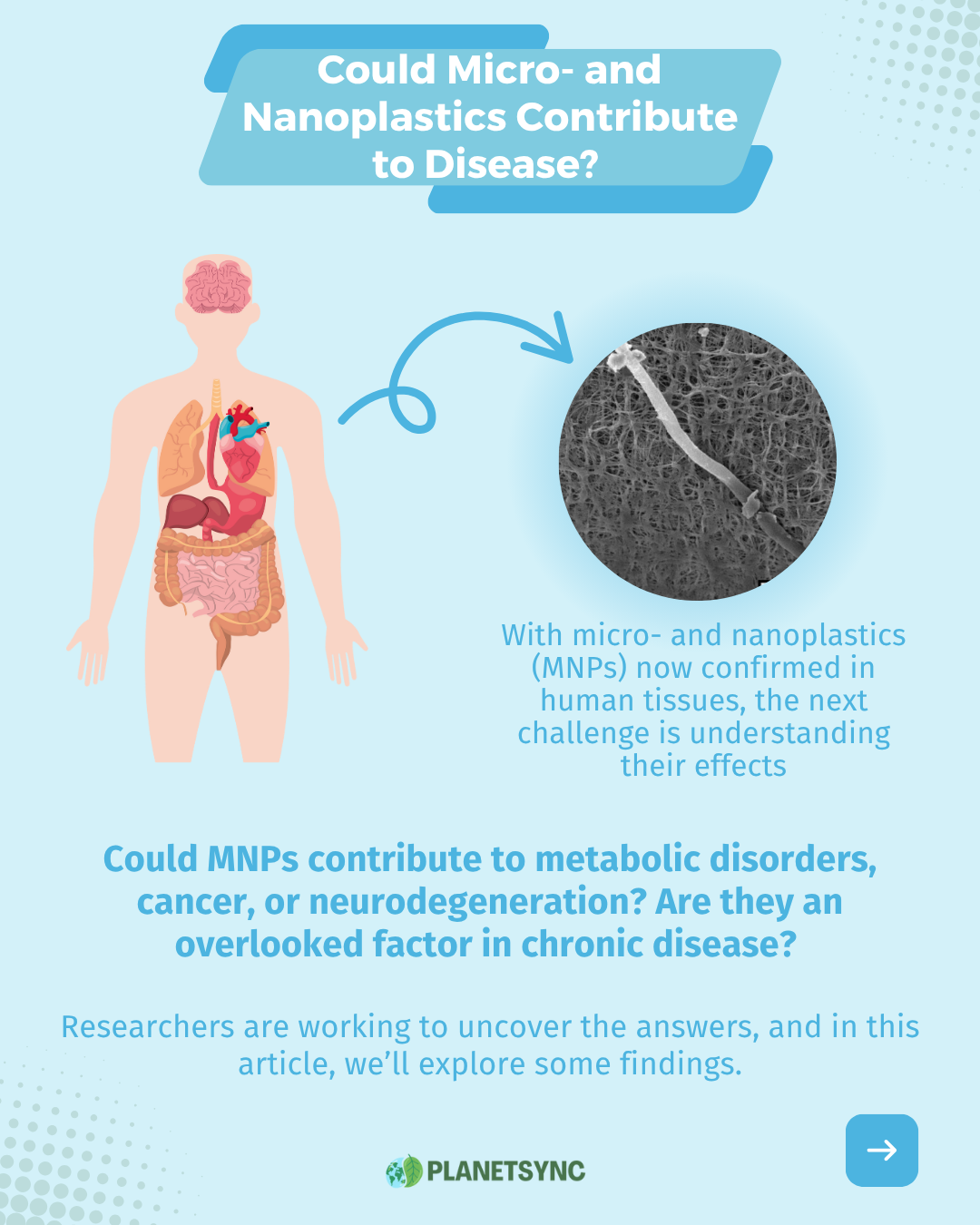 With micro- and nanoplastics (MNPs) now confirmed in human tissues, the next challenge is understanding their effects. Could these particles contribute to metabolic disorders, cancer, or neurodegeneration? Are they an overlooked factor in chronic disease? Researchers are working to uncover the answers, and in this section, we’ll explore some findings.