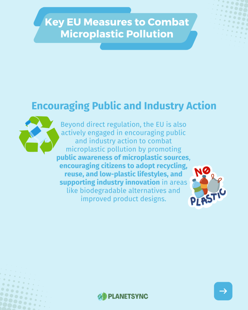 Beyond legislation, the EU is promoting initiatives that encourage individuals and businesses to reduce plastic consumption and improve recycling practices. Raising public awareness and enhancing recycling infrastructure are essential steps toward mitigating microplastic contamination in the long term.