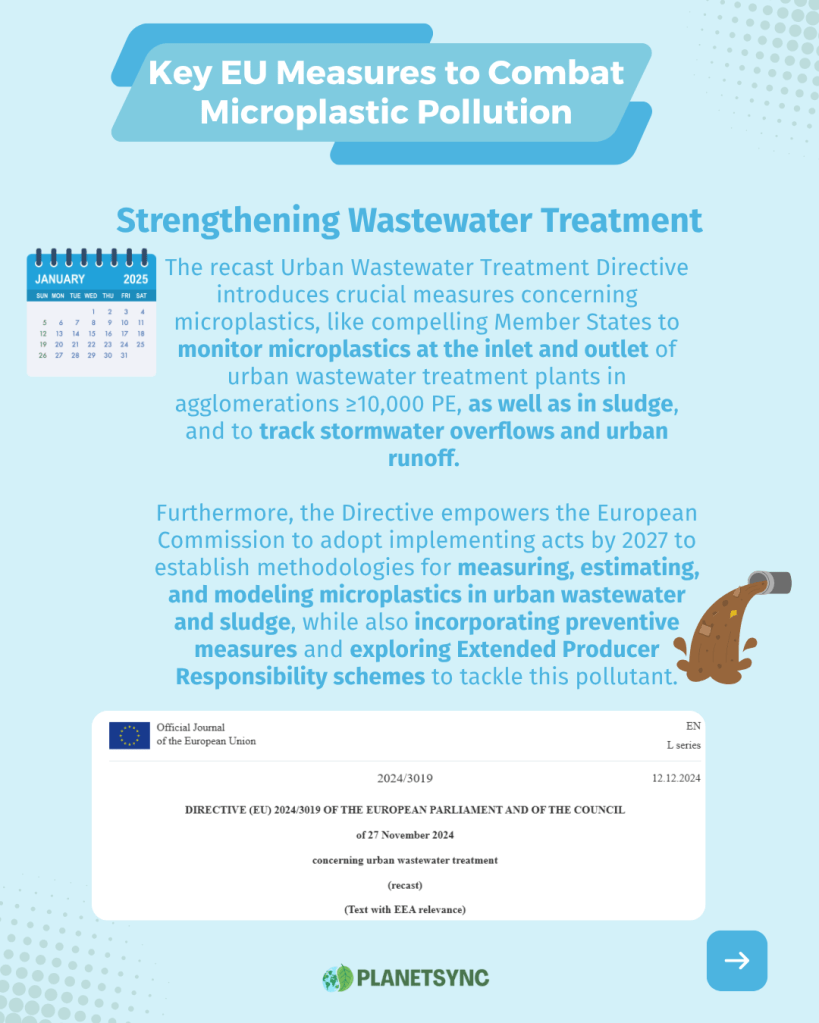 The recast Urban Wastewater Treatment Directive, which came into effect on January 1, 2025, outlines several measures related to microplastics, some of them are: