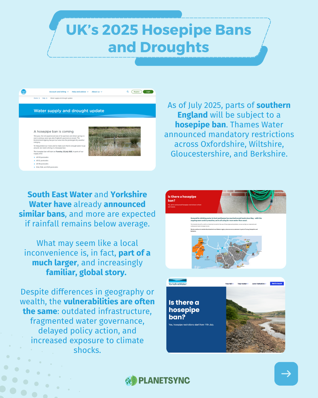 - Environment Agency. (2025, June 12). Why do we have hosepipe bans during a drought? https://environmentagency.blog.gov.uk/2025/06/12/why-do-we-have-hosepipe-bans-during-a-drought/