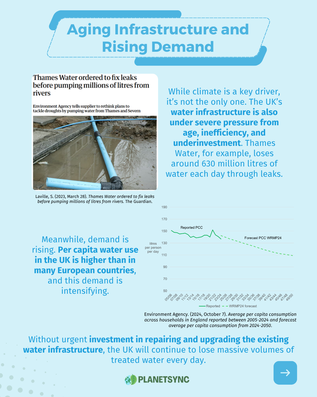 - Laville, S., & correspondent, S. L. E. (2023, March 28). Thames Water ordered to fix leaks before pumping millions of litres from rivers. The Guardian. https://www.theguardian.com/environment/2023/mar/28/thames-water-ordered-to-fix-leaks-before-pumping-millions-of-litres-from-rivers