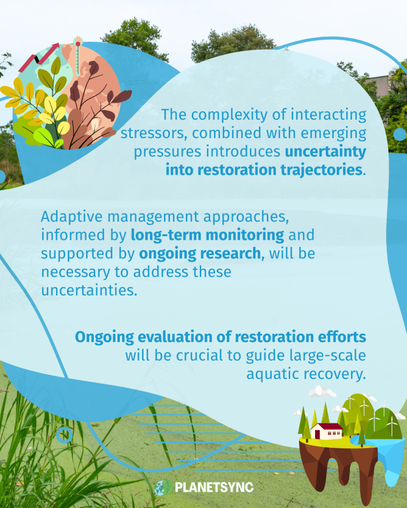 However, the complexity of interacting stressors, combined with emerging pressures such as climate change, introduces substantial uncertainty into restoration trajectories. Adaptive management approaches, informed by long-term monitoring and supported by ongoing research, will likely be necessary to address these uncertainties.