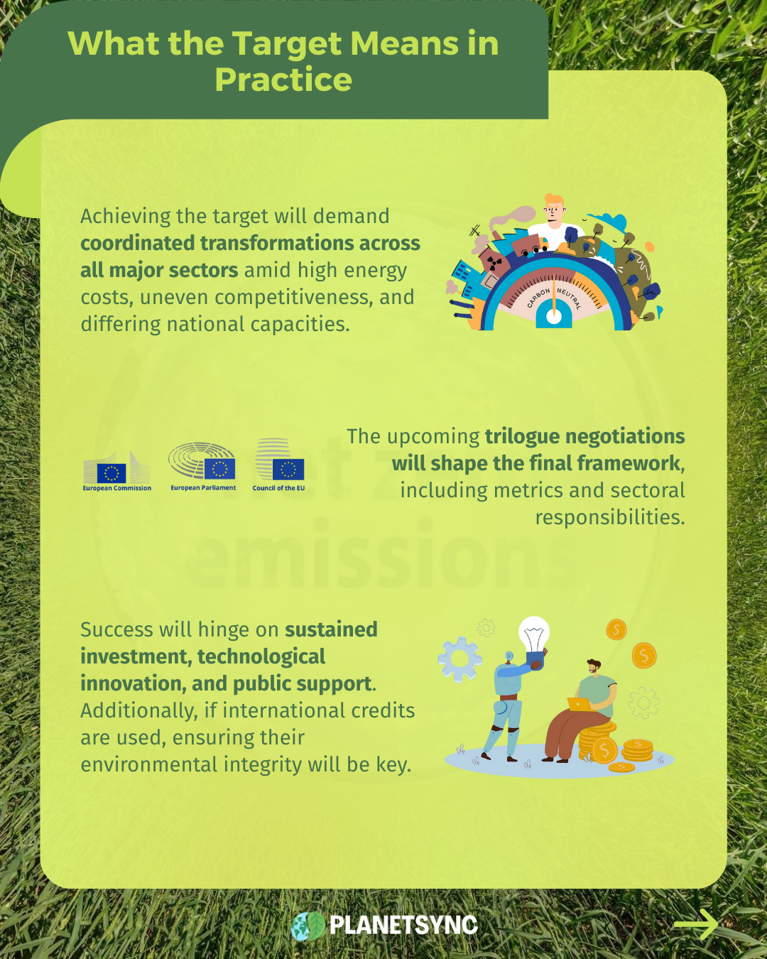 This is where the harder work begins. Trilogue negotiations will determine the final legal framework, including how progress is measured and how responsibilities are shared across sectors. Delivering the target will depend on long-term investment, technological innovation and public support, especially in sectors facing structural constraints such as heavy industry and agriculture. Additionally, if international credits are used, ensuring their environmental integrity will remain essential.